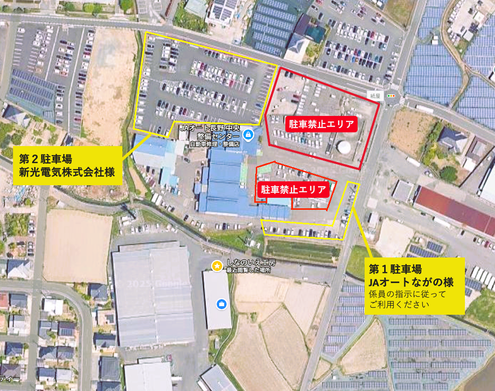 A. お車でご来場の際は「しなのいえ工房」または「株式会社アグリトライ」で検索をお願いいたします。