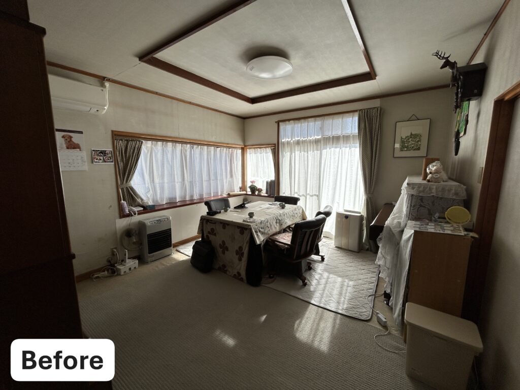 工事前のリビング。冬はエアコン・こたつ・ストーブと、暖房器具が総動員の暮らしでした。